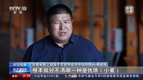 安徽潁上縣源豐農(nóng)業(yè)專業(yè)合作社負(fù)責(zé)人 蔡俊軍:根本就分不清哪些是優(yōu)質(zhì)小麥,是企業(yè)要的,哪些是普通小麥,就因?yàn)檫@個(gè),我第一次收,最后虧了3萬(wàn)多塊錢。