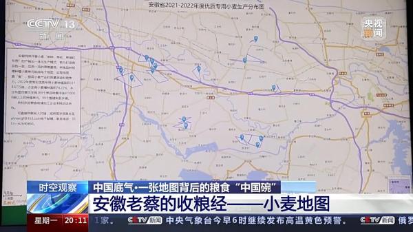 今年安徽夏糧總產(chǎn)量達(dá)1722.4萬(wàn)噸,居全國(guó)第3位;比2021年夏糧增產(chǎn)22.5萬(wàn)噸,增量居全國(guó)第2位,全省夏糧呈現(xiàn)面積、單產(chǎn)、總產(chǎn)和效益“四增”的特點(diǎn)。占比74%的優(yōu)質(zhì)專用小麥,助力增產(chǎn)。再回到老蔡,作為糧食經(jīng)紀(jì)人,還差20萬(wàn)畝的小麥?zhǔn)召?gòu)目標(biāo),老蔡決定主動(dòng)出擊。究竟去哪里能收購(gòu)到優(yōu)質(zhì)小麥呢,老蔡的收糧經(jīng)里的第三個(gè)關(guān)鍵詞出現(xiàn)了:地圖。