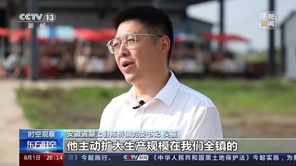 安徽潁上縣陳橋鎮(zhèn)黨委書(shū)記 吳亞:他主動(dòng)擴(kuò)大生產(chǎn)規(guī)模在我們?nèi)?zhèn)的示范帶動(dòng)作用是非常明顯的,如果我們鎮(zhèn)有十個(gè)八個(gè)像老蔡這樣的糧食經(jīng)紀(jì)人,新型經(jīng)營(yíng)主體,那么全鎮(zhèn)6.5萬(wàn)畝耕地都種上優(yōu)質(zhì)專用小麥也是指日可待了。