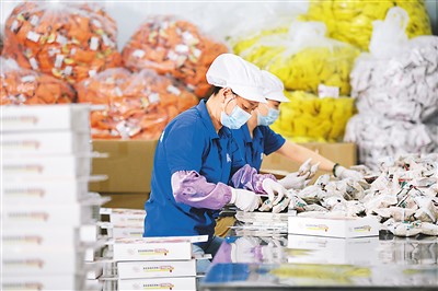 福建省寧德市古田縣積極落實階段性緩繳社保工作,并出臺減稅降費、金融扶持等各項紓困政策,幫助當地企業渡過難關,實現健康發展。圖為7月23日,工人在古田縣晟農無公害銀耳基地打包銀耳產品。