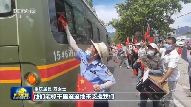 重慶居民 萬女士:他們能夠千里迢迢地來支援我們,他們也是人家的孩子,我們真的都很心疼他們,確確實(shí)實(shí)太感謝他們了。