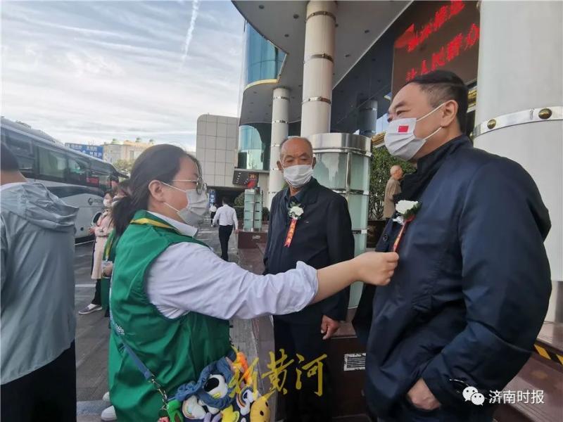 8:47,烈屬車隊到達濟南革命烈士陵園,烈士家屬在志愿者的指引下到達現場。