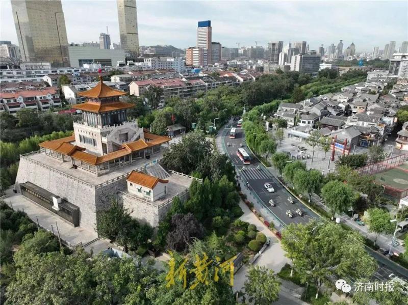 車隊在此經過時,車速放緩。74年前,中國人民解放軍就是在這里作為攻城突破口,解放了濟南這座城。