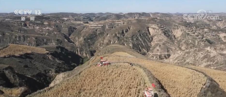 在米脂縣萬畝高標(biāo)準(zhǔn)農(nóng)田里,收割機(jī)在谷田里來回穿梭,保證顆粒歸倉。今年,當(dāng)?shù)赜晁渑妫人胱蚜o枬M、長勢喜人,預(yù)計(jì)今年谷子畝產(chǎn)將達(dá)到800斤,每畝較去年增收900到1000元。