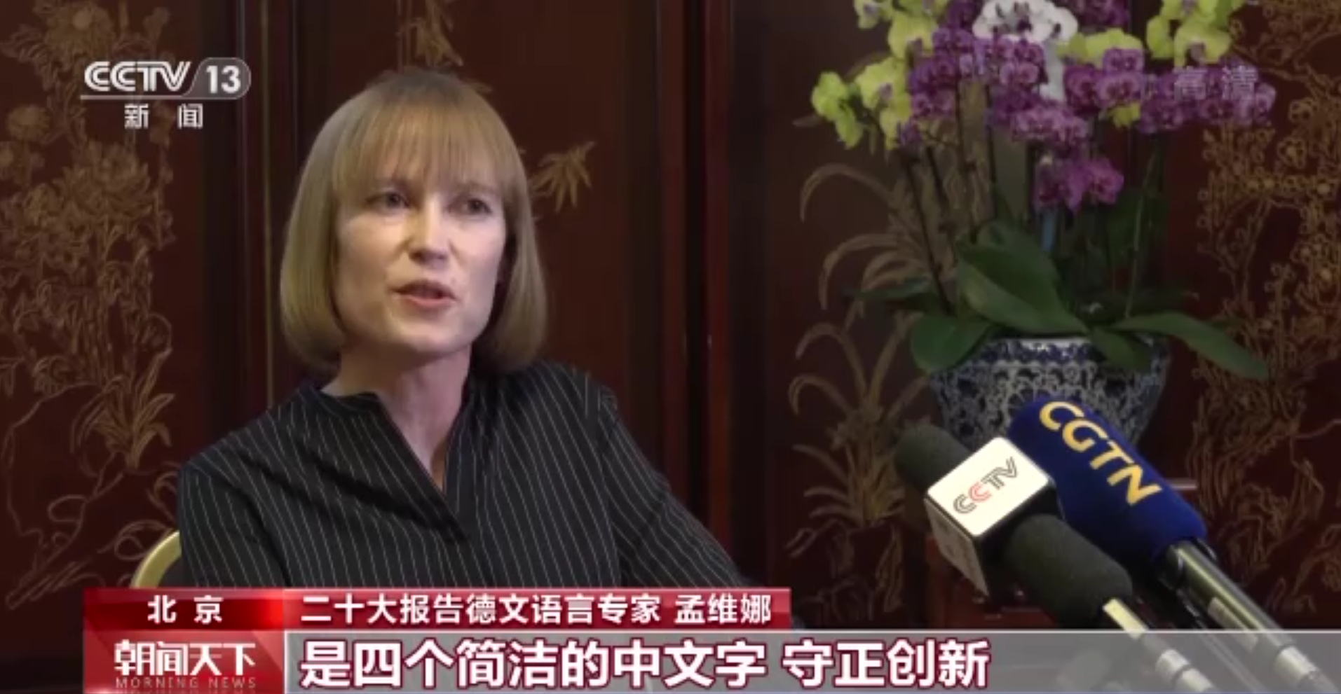 二十大報告德文語言專家 孟維娜:報告中有一個表述深深地留在我腦海中,是四個簡潔的中文字,守正創(chuàng)新。它和我在中國十多年的所見所感是一致的,一方面守住中國的傳統(tǒng)與文化根脈,另一方面又敢于去創(chuàng)新。
