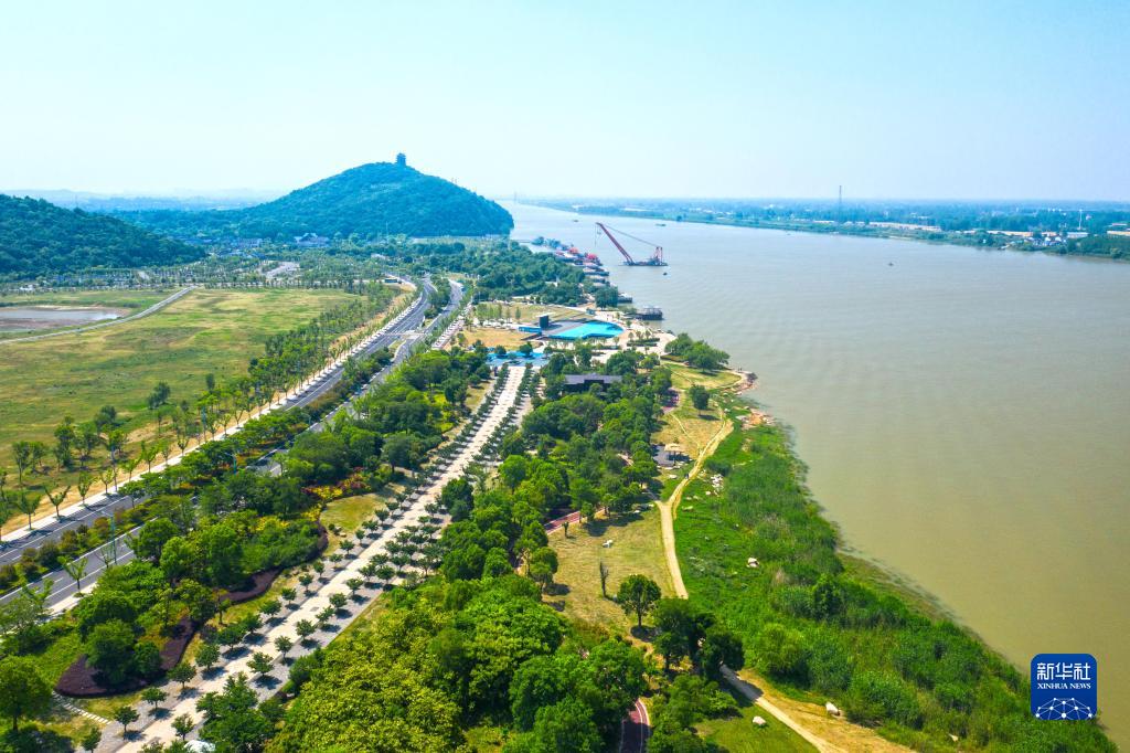 安徽省馬鞍山市長江岸線景觀帶(2022年5月17日攝,無人機照片)。新華社發