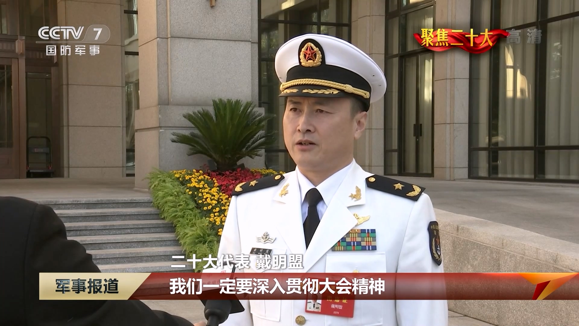 二十大代表 戴明盟:這是一次高舉旗幟、凝聚意志、團結奮進的大會。我們一定要深入貫徹大會精神,堅決聽從統帥號令,忠實履行使命任務,扎實抓好練兵備戰,為如期完成建軍百年目標,開創國防和軍隊現代化新局面而團結奮斗。