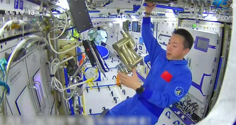 這是在問天實驗艙,蔡旭哲手里拿的是什么?看上去像是一個小小的機械臂。沒錯,中國空間站除了有艙外的大機械臂、小機械臂,還有一個艙內的靈巧機械臂,這個靈巧機械臂用于在科學手套箱內的一些精細化操作。問天實驗艙內,蔡旭哲種植的植物長勢喜人,看來種菜這件事,蔡旭哲還挺在行,這是他在小心翼翼地用水袋給花盆里加水。有了綠色植物,太空家園里顯得更有生機。對問天艙進行維護也是航天員在軌期間的一項重要工作。目前,夢天實驗艙發射在即,航天員在軌工作狀態良好,讓我們一起期待夢天實驗艙的到來。(央視網)