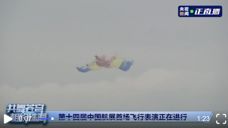 今天(8日)上午,第十四屆中國國際航空航天博覽會在珠海開幕。中國空軍八一飛行表演隊六機編隊共舞藍天,一起來看精彩的飛行表演↑