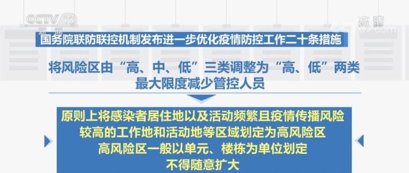 央視網(wǎng)消息:國務(wù)院聯(lián)防聯(lián)控機(jī)制11月11日發(fā)布《關(guān)于進(jìn)一步優(yōu)化新冠肺炎疫情防控措施 科學(xué)精準(zhǔn)做好防控工作的通知》,通知明確了進(jìn)一步優(yōu)化防控工作的二十條措施。進(jìn)一步優(yōu)化防控工作的二十條措施中,對(duì)風(fēng)險(xiǎn)區(qū)劃定等方面也提出新的規(guī)定。