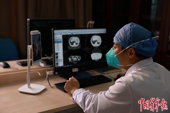 相比之下,互聯網醫院診室里安靜得多。12月27日下午,朝陽醫院腫瘤科副主任醫師關印剛囑咐完一名患者的用藥事項,又接通了另一名患者的視頻,并在電腦上打開了他的醫學影像。半個多月前,朝陽醫院組織呼吸科、胸外科、中醫科、腫瘤科、產科、生殖中心6個科室的醫務人員為患者提供“新冠感染在線問診”服務,在這一特殊時期,實現醫療服務供給量的增加。