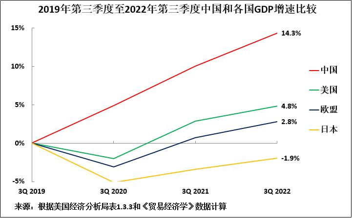 圖3:2019年第三季度至2022年第三季度中國和各國GDP增速比較