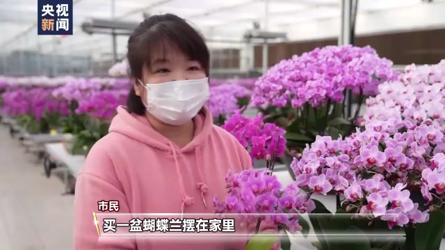 市民:過年了,買一盆蝴蝶蘭擺在家里,這樣就年味更濃了,也象征著花開富貴。