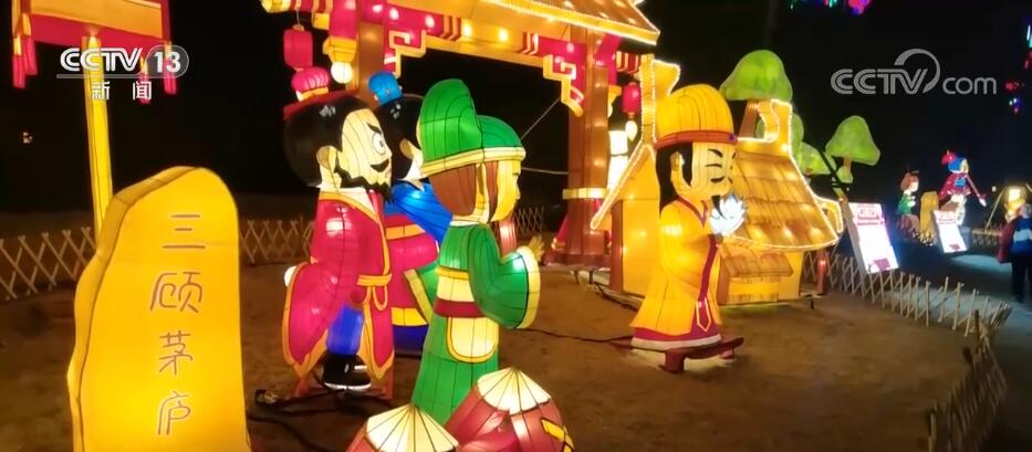 臥龍崗景區(qū)工作人員 冀柯:設(shè)置了300多組彩燈,把三國故事和我們的民俗文化、非遺節(jié)目串聯(lián)在一起了。