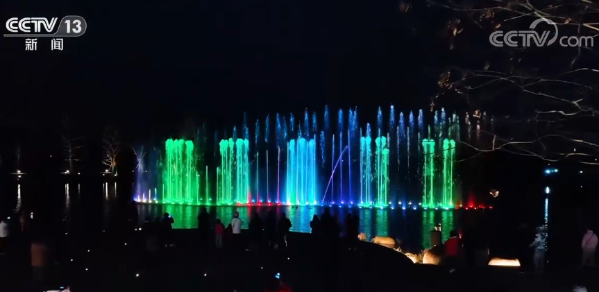 而震澤鎮區的十字漾公園畔開啟的音樂噴泉表演,讓元宵夜游又多了一份現代光影的魅力。