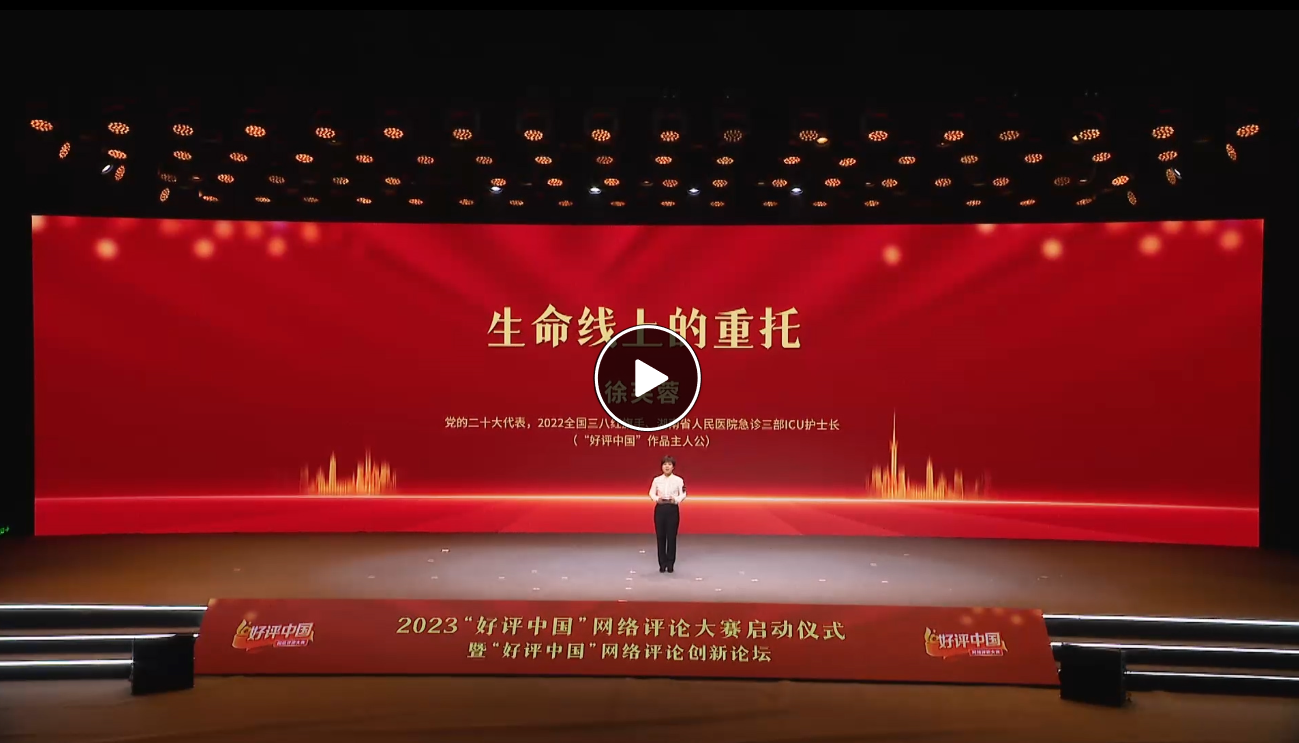 3月31日,2023“好評中國”網絡評論大賽啟動儀式暨“好評中國”網絡評論創(chuàng)新論壇在湖南長沙舉行。活動現場,黨的二十大代表,湖南省人民醫(yī)院急診三部ICU護士長,“好評中國”參賽作品主人公徐芙蓉圍繞《生命線上的重托》作主題分享。