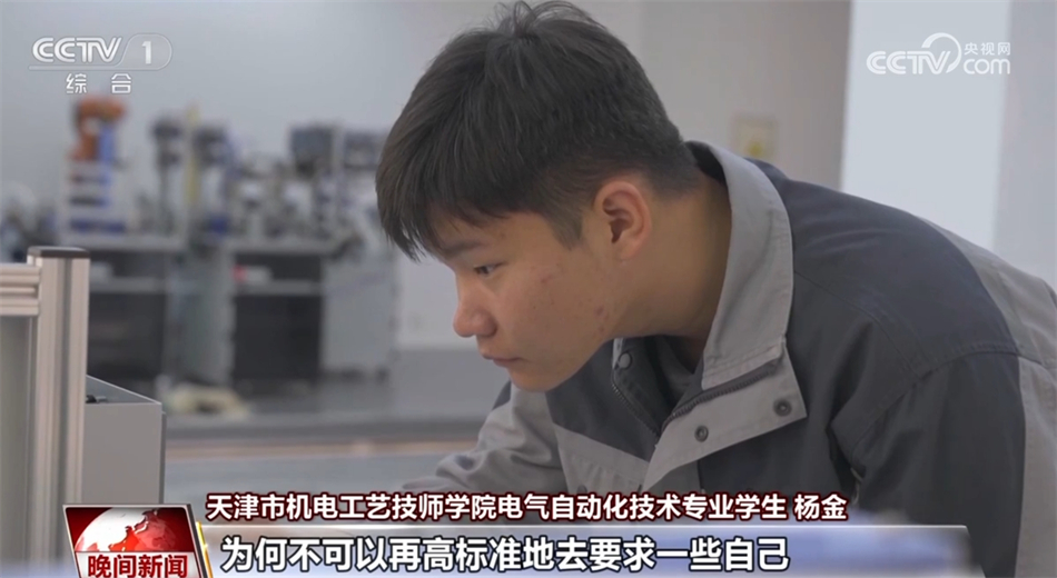 天津市機電工藝技師學院電氣自動化技術專業(yè)學生 楊金:讓每一顆螺絲、每一個部件都能發(fā)揮出它最大的作用,這就是我的需要和目標了。(未來希望)自主去研發(fā)需要使用的機器,可以去創(chuàng)造(更多)屬于咱們(國人)自己的(電氣化)產品。
