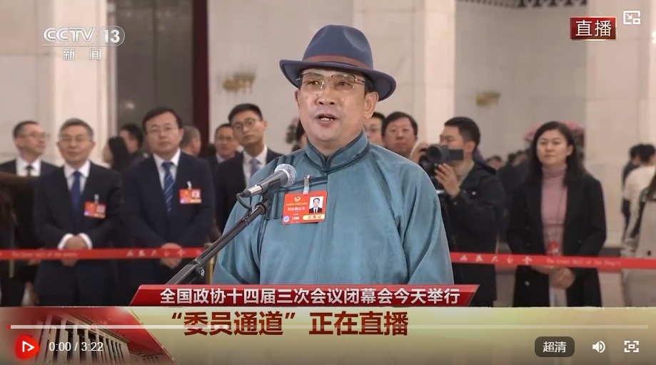 今天(3月10日),全國政協十四屆三次會議第三場“委員通道”在人民大會堂舉行,全國政協委員、內蒙古蘇尼特左旗烏蘭牧騎隊長阿拉騰達來接受了記者采訪。