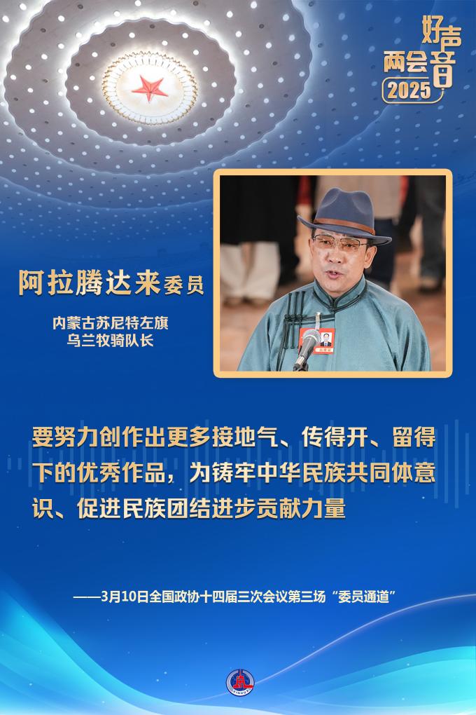“在內蒙古大地上,活躍著75支烏蘭牧騎隊伍,有3000多名隊員,每年開展演出1萬多場。”阿拉騰達來委員說,要努力創(chuàng)作出更多接地氣、傳得開、留得下的優(yōu)秀作品,為鑄牢中華民族共同體意識、促進民族團結進步貢獻力量。