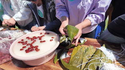 在湖南張家界黃龍洞景區(qū)生態(tài)廣場,60多名來自印度尼西亞的游客興致勃勃地參加了“端午佳節(jié)·‘粽’情相約”民俗體驗活動。在景區(qū)工作人員指導(dǎo)下,印尼游客從選粽葉、折粽葉、填充糯米到捆扎,學(xué)得有模有樣。印度尼西亞游客魏琳開心地告訴記者,“在這邊非常高興可以體會到自己做粽子,學(xué)習(xí)怎么捆,怎么包扎的感覺。包粽子這個活動,為我的旅游行程增添歡樂和溫暖。”