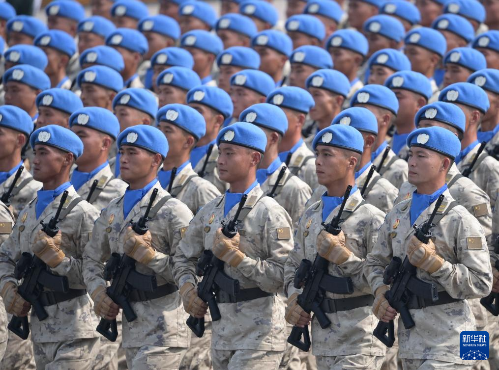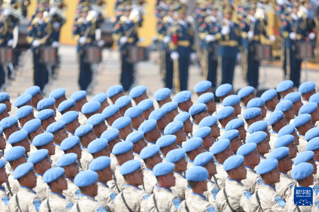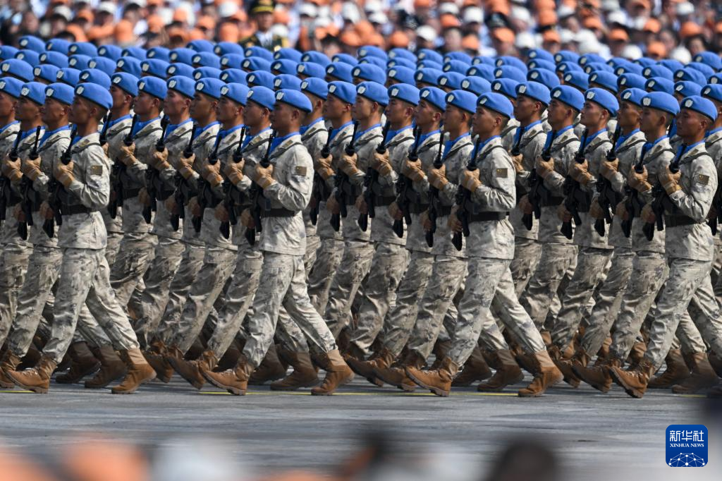 9月3日,紀念中國人民抗日戰爭暨世界反法西斯戰爭勝利80周年大會在北京隆重舉行。這是維和部隊方隊接受檢閱。