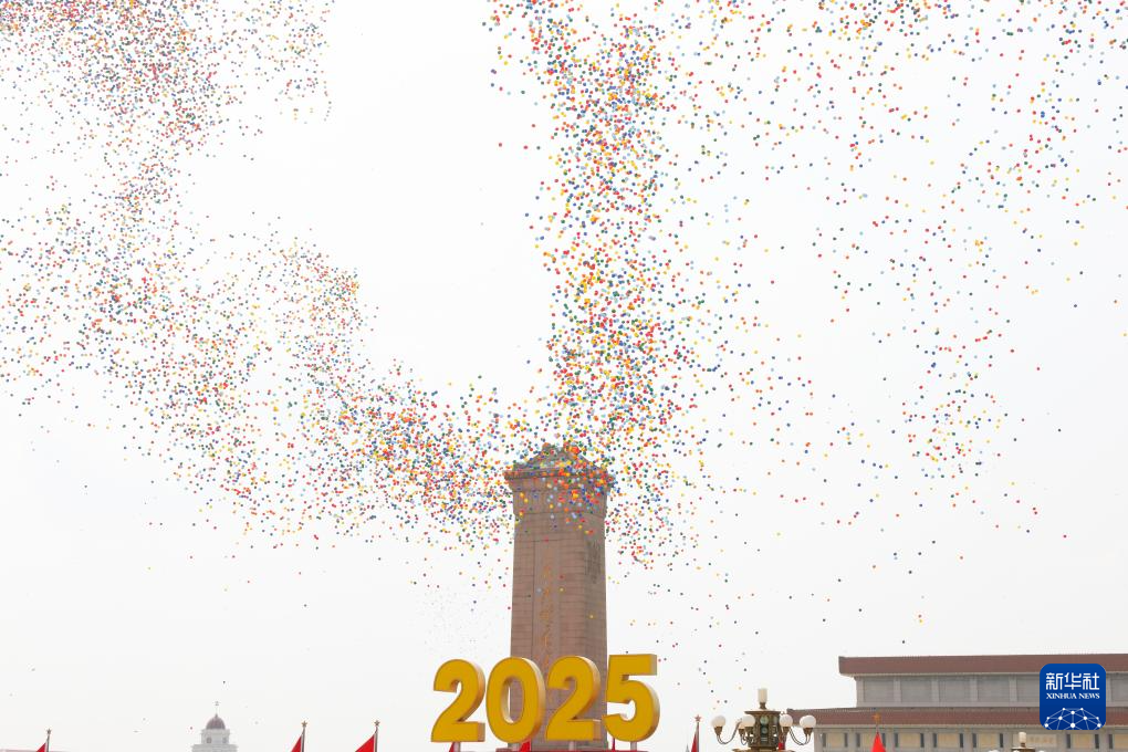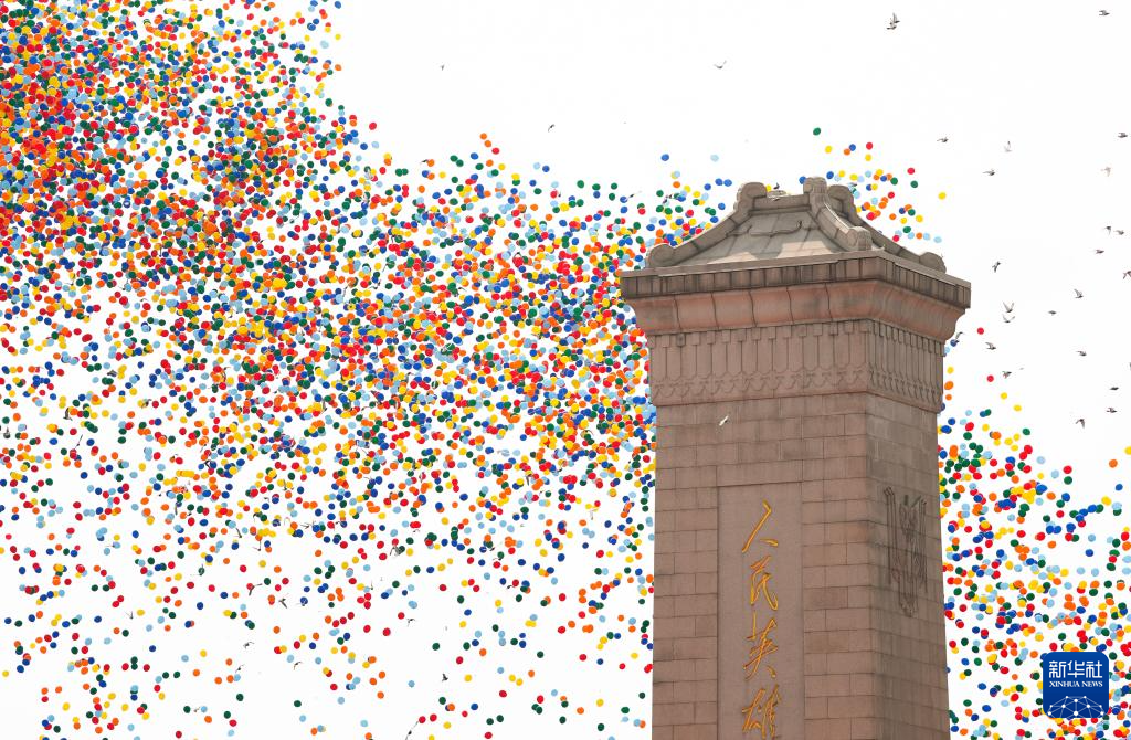 9月3日,紀念中國人民抗日戰爭暨世界反法西斯戰爭勝利80周年大會在北京隆重舉行。這是紀念大會現場放飛氣球。