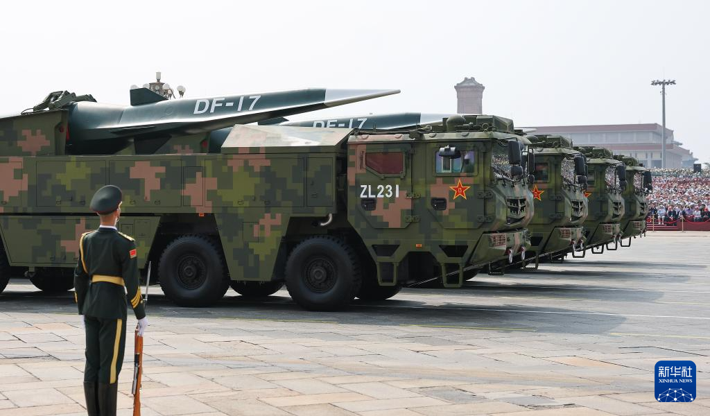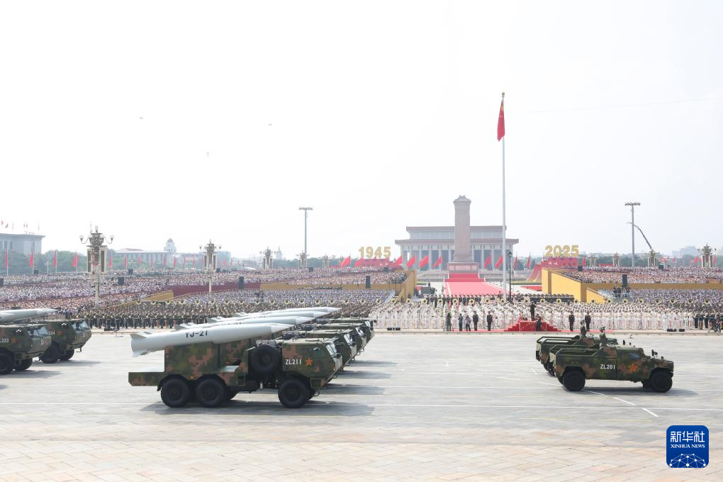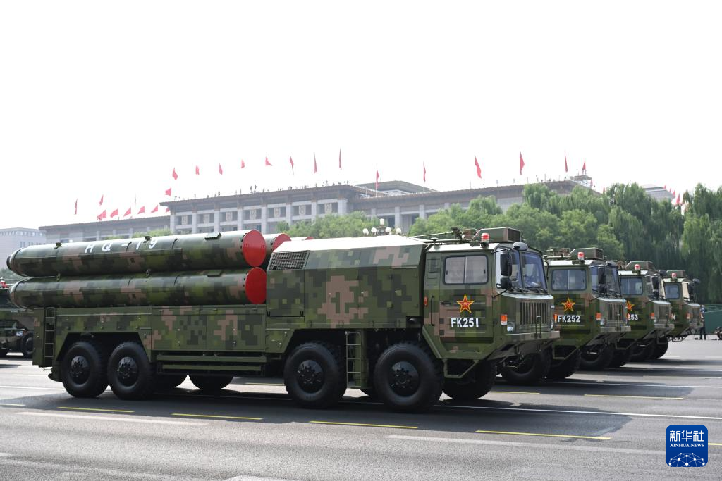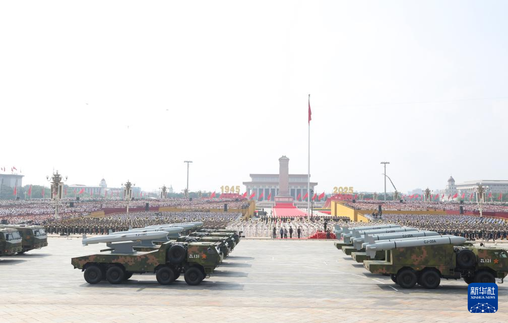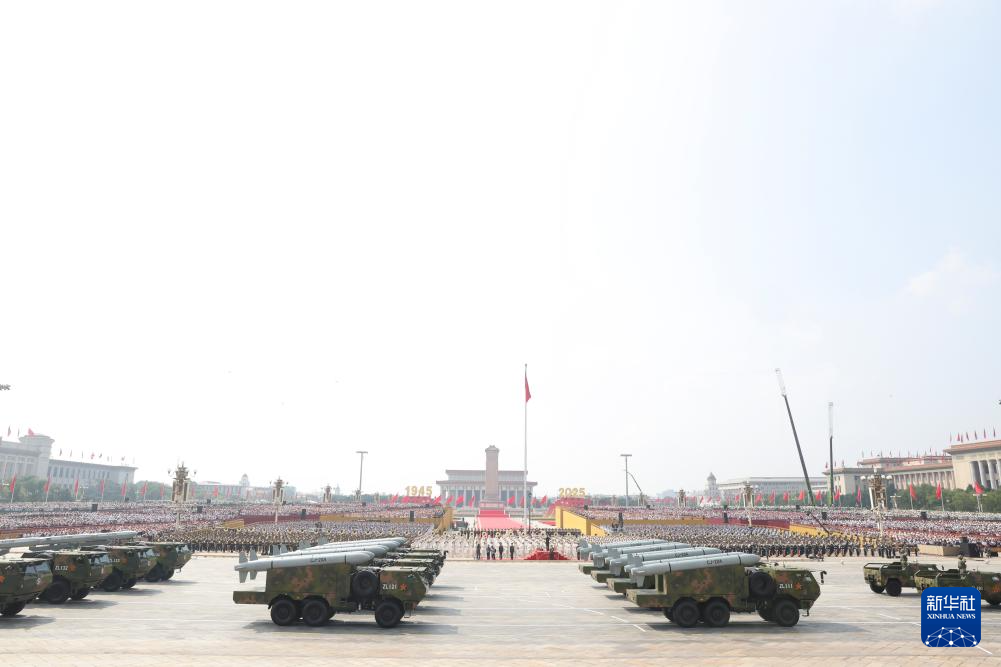 9月3日,紀念中國人民抗日戰爭暨世界反法西斯戰爭勝利80周年大會在北京隆重舉行。這是高超聲速導彈方隊接受檢閱。