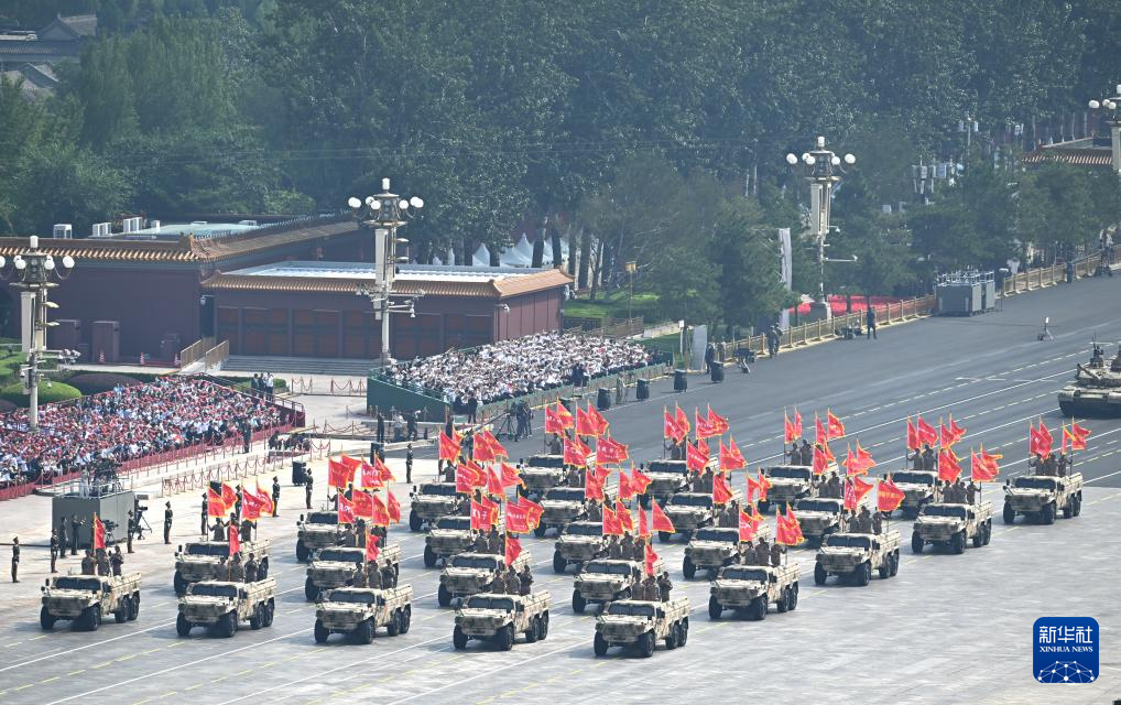 9月3日,紀念中國人民抗日戰爭暨世界反法西斯戰爭勝利80周年大會在北京隆重舉行。這是戰旗方隊通過天安門廣場。