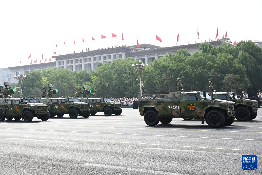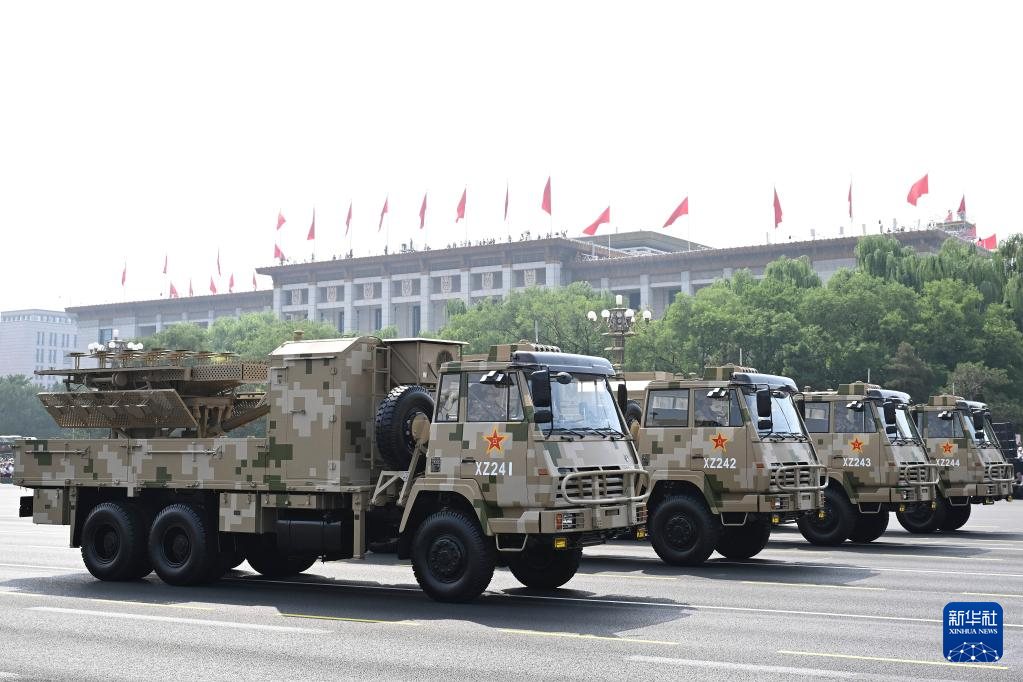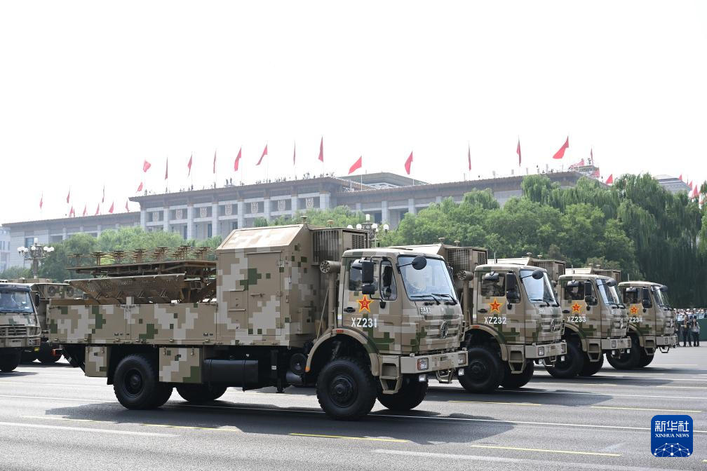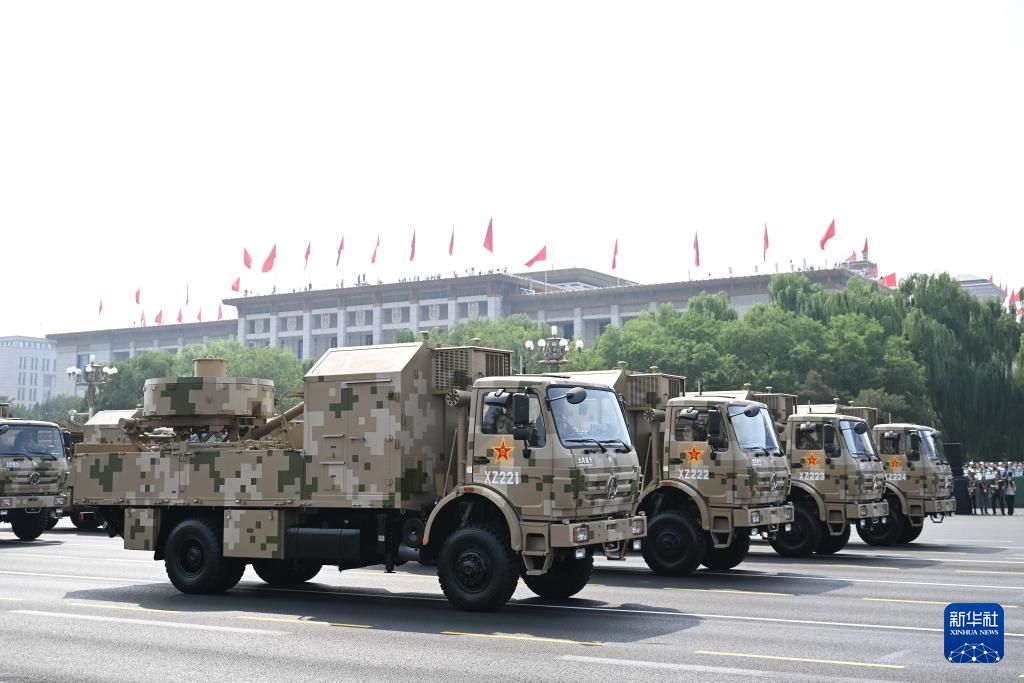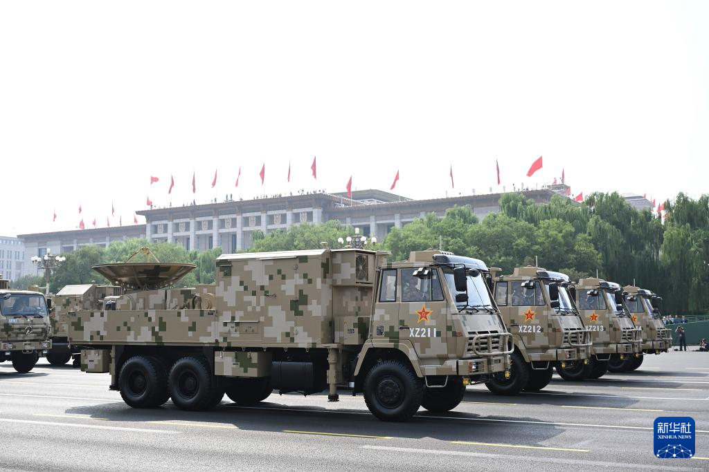 9月3日,紀念中國人民抗日戰爭暨世界反法西斯戰爭勝利80周年大會在北京隆重舉行。這是電子對抗方隊接受檢閱。