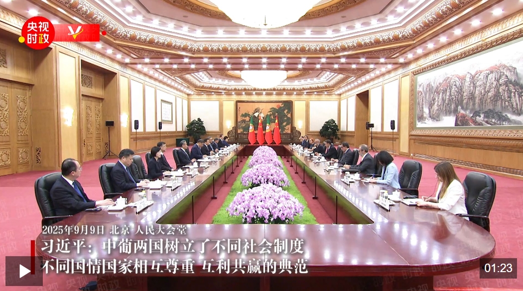 9月9日上午,國家主席習近平在北京人民大會堂會見葡萄牙總理蒙特內格羅。