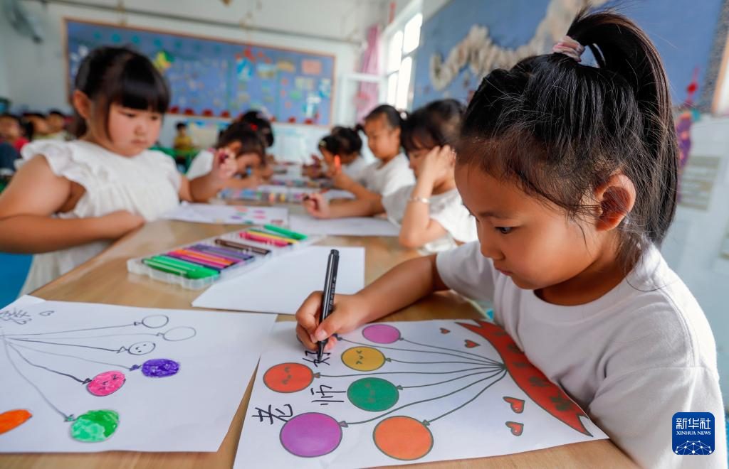 9月9日,河北省遵化市遵化鎮(zhèn)南關(guān)幼兒園的小朋友在繪制美術(shù)作品感念師恩。