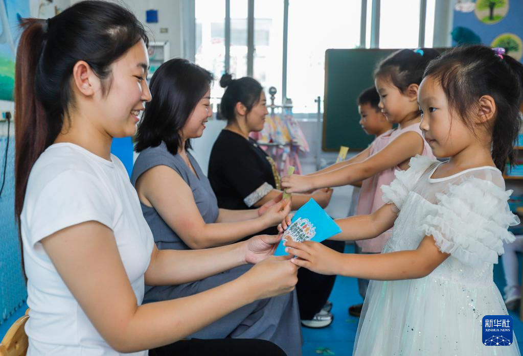 9月9日,河北省遵化市遵化鎮(zhèn)南關(guān)幼兒園的小朋友給老師送賀卡,祝福教師節(jié)。