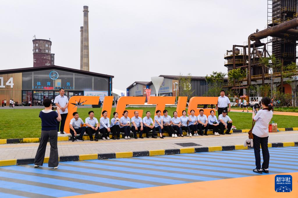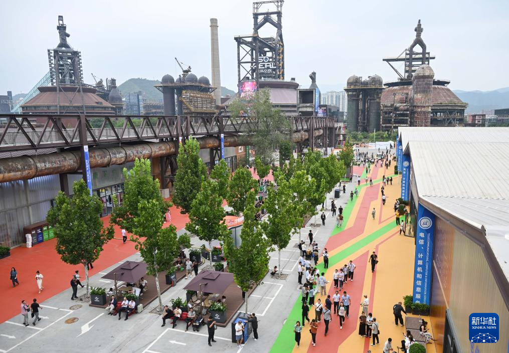9月10日,在首鋼園四高爐,參會人員進出會議區。