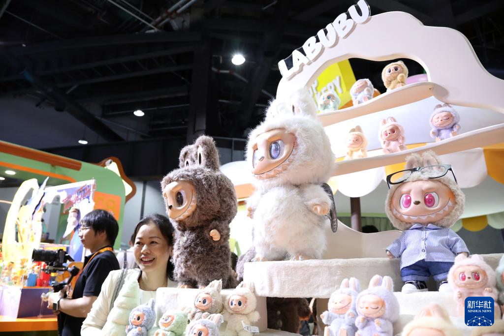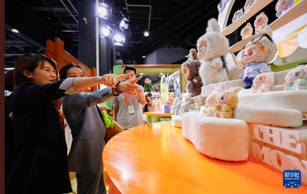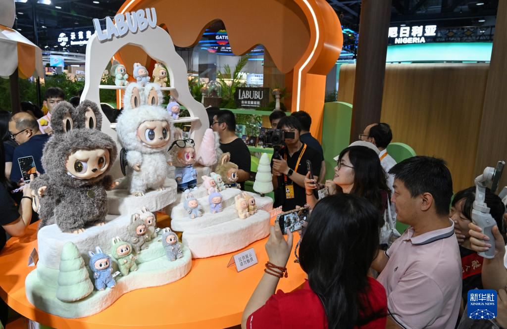 9月10日,在2025年服貿會主題展區,參會人員參觀泡泡瑪特展臺。