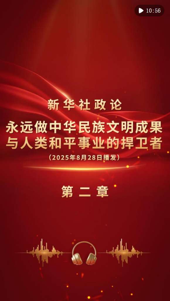 新華社8月28日播發《新華社政論|永遠做中華民族文明成果與人類和平事業的捍衛者——寫在中國人民抗日戰爭暨世界反法西斯戰爭勝利80周年之際》。我們邀請誦讀嘉賓李立宏演播“第二章”。