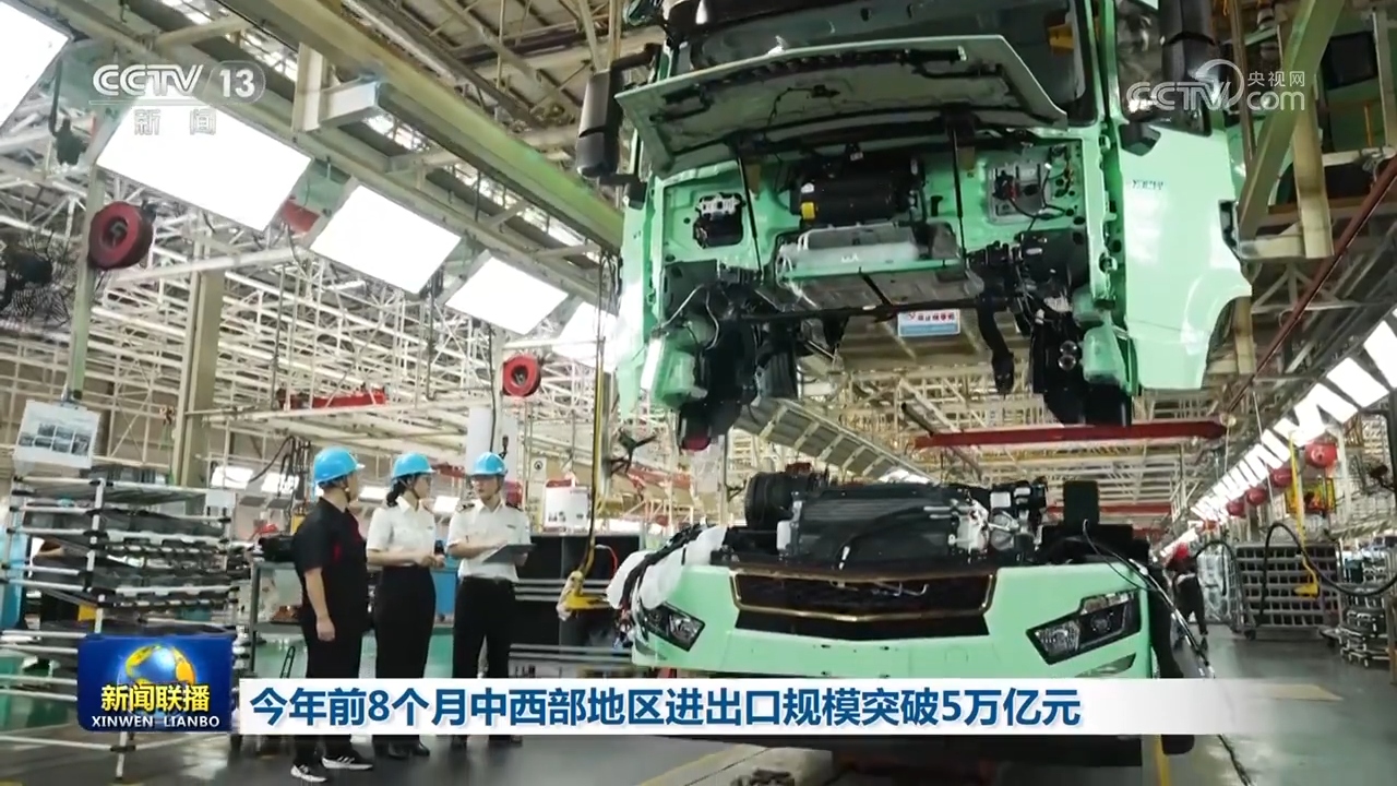 央視網消息(新聞聯播):今年前8個月,我國中西部地區貨物貿易進出口5.31萬億元,創歷史同期新高,增長10.4%,增速繼續領跑全國。中西部地區進出口值占全國整體的比重提升到18%。