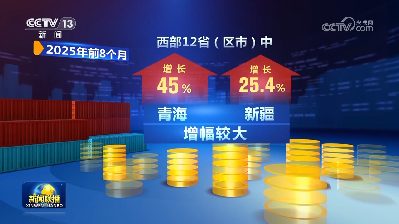 西部12省區市中,青海、新疆增幅較大,分別增長45%、25.4%。