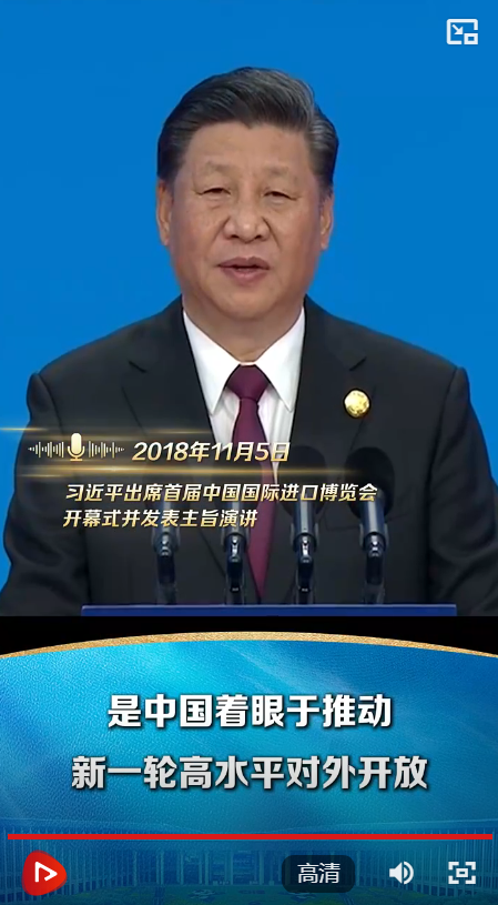 天天學習“中國將堅定不移奉行互利共贏的開放戰略,實行高水平的貿易和投資自由化便利化政策,推動形成陸海內外聯動、東西雙向互濟的開放格局。”2018年11月5日,在背靠長江水、面向太平洋的上海,習近平主席向世界鄭重宣布首屆中國國際進口博覽會正式開幕,并呼吁各國“拿出更大勇氣,積極推動開放合作,實現共同發展”。