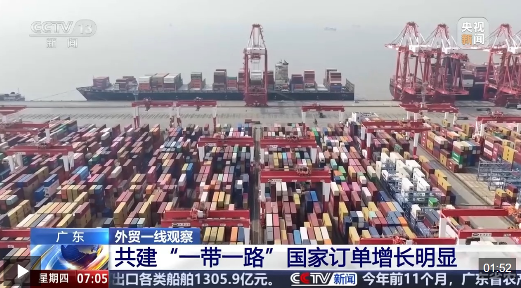 廣州海關統計分析處副處長 楊凡:今年以來,廣州對共建“一帶一路”國家進出口連續11個月保持兩位數增長,占廣州進出口總值超四成。