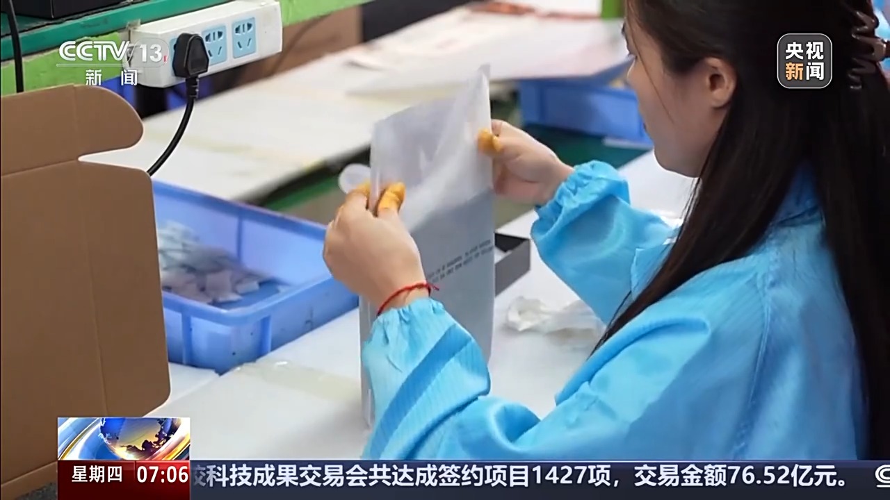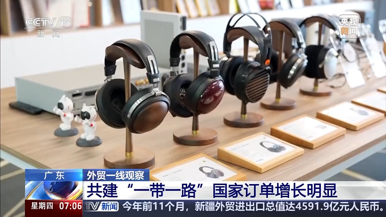 在外貿大省廣東,一家電子科技企業正在加緊生產一批音樂播放器、藍牙解碼耳機等產品,這批貨物即將出口至泰國。