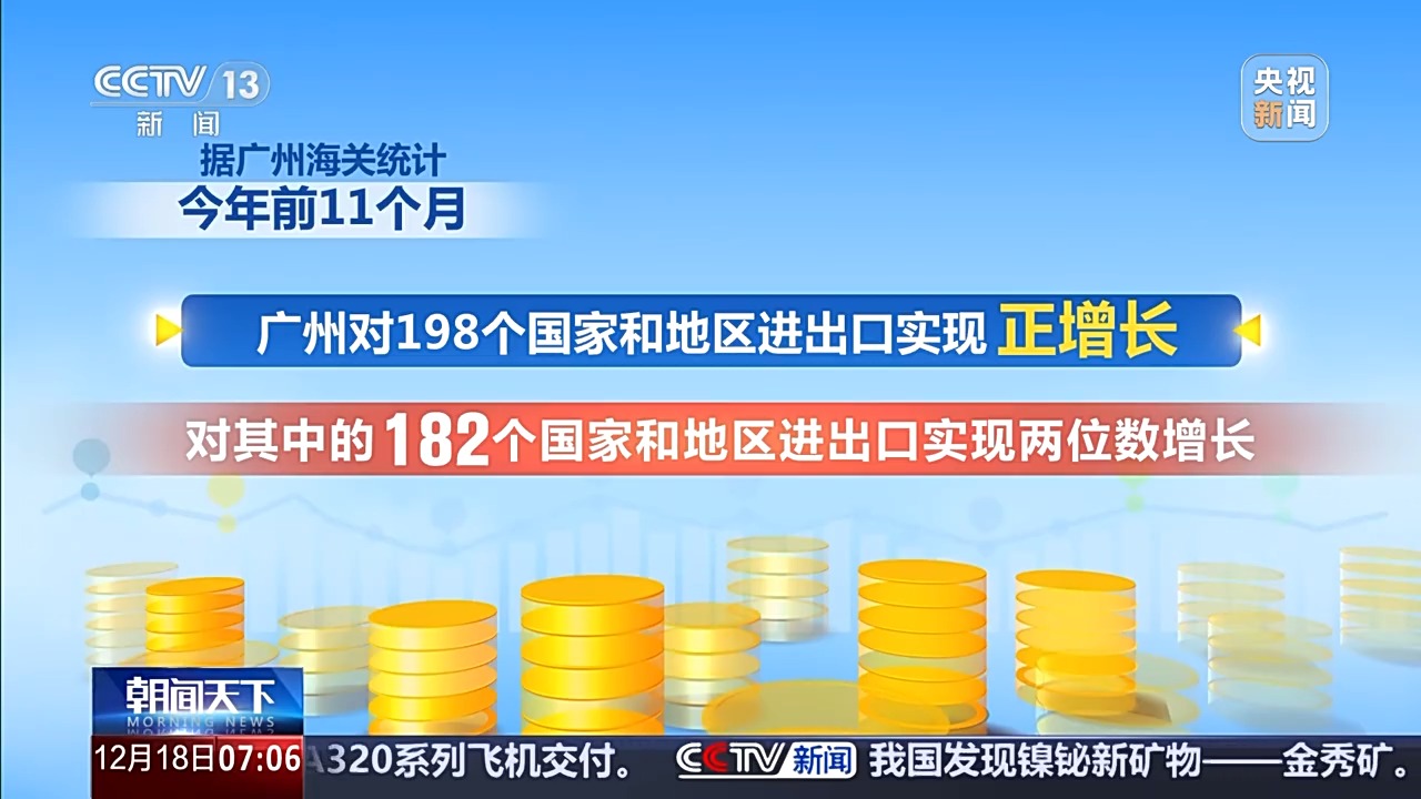 據廣州海關統計,今年前11個月,廣州對198個國家和地區進出口實現正增長,對其中的182個國家和地區進出口實現兩位數增長。