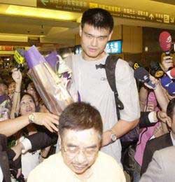 身高226公分的姚明一現身機場,在旅客中鶴立雞群,立刻引起旅客和球迷的騷動,球迷和旅客紛紛拿起相機拍照,還有人高舉雙手要和偶像擊掌,姚明也是來者不拒,還頻頻親切揮手致意,現場“姚明我愛你”的驚叫聲連連。姚明原定發表簡短的來臺感言,但因為球迷與媒體太過熱情,現場秩序大亂,姚明匆匆搭車離去。