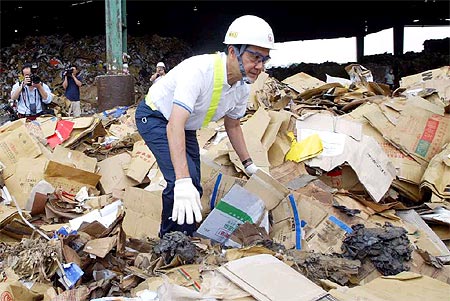 馬英九撿破爛體驗勞工生活。(圖:“中時電子報”)