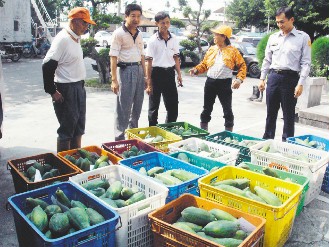 彰化縣警方把查扣的蔬果擺在派出所前,供失竊農民指認。(圖:聯合報)
