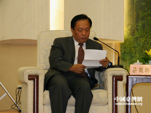 2007年10月25日,紀念臺灣光復62周年座談會在北京人民大會堂隆重舉行,全國臺聯會長梁國揚在會上發言。 (攝影:趙穎芳)