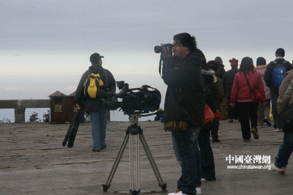 不顧一路旅途的疲憊,也不顧山上冰冷的雪霜,臺(tái)灣媒體團(tuán)一路直上峨眉金頂。“天上金頂,天下峨眉”,金頂上云霧飄渺,有如人間仙境。媒體團(tuán)的記者們一下車就投入到令人向往的云中仙境中,感嘆大自然的鬼斧神工和山水間的寫意勾勒。才剛見到峨眉山的一角,臺(tái)灣記者們就已經(jīng)迫不及待地?cái)[開架勢,支起攝像機(jī)、照相機(jī),想把看到的全部美景都捕捉下來。