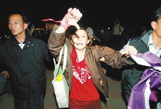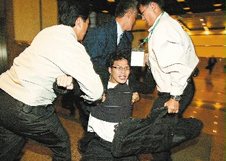 女“紅衫軍”嗆扁遭架離。(聯(lián)合報圖)