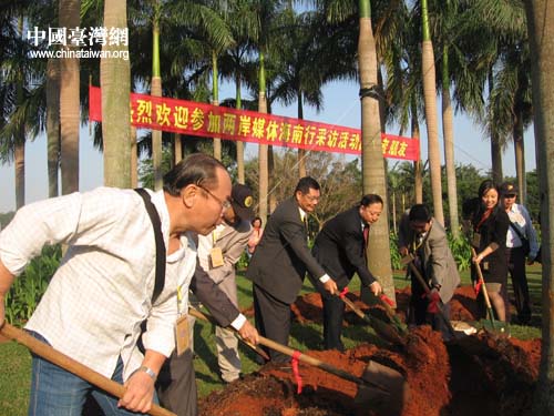 中國臺灣網(wǎng)11月30日?谙 昨天上午,參加“兩岸媒體海南行”的40余名兩岸記者共同在?谌f綠園植樹,表達兩岸新聞界保護環(huán)境,造福后代人的美好愿望,并預(yù)祝兩岸媒體的友誼像記者林一樣,根深葉茂、萬古長青。(李杰)