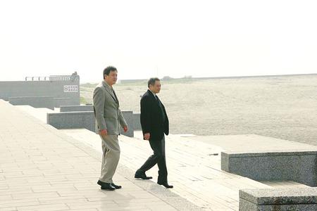 李安(右)到海邊遙祭父親