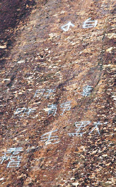 當地村民說,時常看到年輕人攀爬上去,爬到哪里,噴字就噴到哪里,“他們好像在比賽,看誰爬得高、噴字作記號!”